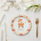 Les plaques à papier avec un petit bébé mignon piaule d'une voiture d'enfant orange conçue par citrouille. À l'arrière-plan est un motif fait utilisant les citrouilles et le feuille. Best suited pour des baby showers pendant l'automne d'automne ! Personnalisez avec votre message de partie.