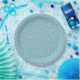 Petite aquarelle blanche, bleue, verte pois sur bleu clair.