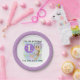 Peu de plaques à papier de ęr anniversaire de fille de poupée, si mignon et coloré, parfait pour la toute première fête d'anniversaire du bébé ! Comporte une poupée avec une robe de lavande et l'arc dans ses cheveux, un ballon pourpre avec des étoiles et le numéro 1, le texte qui le lit est mon anniversaire et cette petite poupée est une ! Le bord extérieur a une frontière de lavande sur le pois pourpre !