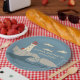 Ajoutez une touche nautique aux fêtes d'anniversaire et autres événements spéciaux avec ces plaques personnalisées en papier. Ils ont une simple illustration nautique d'un phare en rouge, crème ou ivoire. Le phare se dresse sur une côte rocheuse avec des vagues qui s'écrasent en contrebas et des nuages crème dans le ciel. Le graphique est positionné contre un arrière - plan bleu français doux.