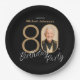 Assiettes En Carton Photo Black Gold Elegant Custom 80e anniversaire