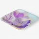 Plaques en papier avec une belle photo d'un crocus violet foncé serti dans un pot en verre. Une légère fleur violette est présente dans l'arrière - plan.