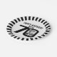 Plaque en papier noir et blanc de 70ème anniversaire avec rayures noir et blanc autour de la jante extérieure de l'assiette et votre propre photo dans le 0 de 70. Une excellente idée pour ajouter un peu de plaisir personnalisé à une fête spéciale de soixante-dixième anniversaire. Personnalisez avec votre propre photo dans le 0 sur 70 et nom. Lit Joyeux anniversaire 70. Graphiques par www.mylittleeden.com