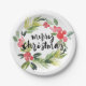 Assiettes En Carton Pin d'aquarelle et couronne blanche Joyeux Noël