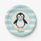 Assiettes En Carton Pingouin mignon avec Bowtie Turquoise