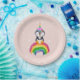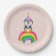Prato de papel com ilustração de um pinguim unicórnio fofo.