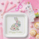 Assiettes En Carton Pink and Blue Wildflower Easter Rabbit