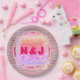 Assiettes En Carton Pink and Green Pretty Hearts Motif et initiales