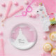 Elegant party for your big day. A pink moon sits behind a white quince girl silhouette on the front with name underneath. Coordinating invite and party items items available. Donc appropriate for a sweet sixteen event.