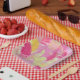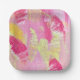 Assiettes En Carton Pink and Yellow Abstract Art Paper Plate