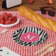 Célébrez votre anniversaire avec style avec chic moderne rose girly et noir zèbre rayé monogramme personnalisé plaque de papier fête d'anniversaire. Modifiez la police, déplacez le texte, et plus encore en cliquant sur le bouton "Customiser".