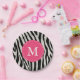Assiettes En Carton Pink & Black Zebra Strig Monogramme fête d'anniver