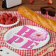 Rappelez-leur le thème de la fête est HOPE avec cette jolie plaque de papier photo de fleur Dahlia rose.