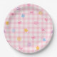 Assiettes En Carton Pink Gingham Floral Bow Baby Shower Paper Plates