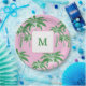 Assiettes En Carton Pink Green Palm Tree Preppy Summer Beach Monogramm