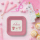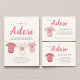 Celebrate the upcoming arrival of your precious baby girl with these "A Girl to Adore" baby shower paper plates. The charming design features a sweet pink polka dot border, setting a festive and adorable tone for your celebration. Three darling baby bodysuites are artfully displayed on a clothesline, each uniquely decorated with hearts and a delicate bow, symbolizing the love and joy this new baby will bring. These plates are perfect for serving delicious treats and cake, adding a touch of whimsical elegance to your baby shower décor. Make your special event even more memorable with these delightful and practical party essentials.