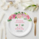 This fun and whimsical wedding plate features watercolor pink roses and foliage. The text combines handwritten script and serif fonts for a stylish and modern look. This is perfect for a spring or summer rustic wedding.
