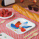 Un imprimé rouge, blanc et bleu qui est créé pour et inspiré par les vacances du 4 juillet ! Une tranche d'Americana avec ce jardin volant ! J'ai créé cette impression en utilisant une de mes photos de l'été 2023, des scènes d'un salon de jardin.