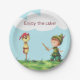 Complétez votre fête avec ces assiettes en papier mignonnes. Le texte sur l'assiette dit "savourez votre gâteau !" mais vous pouvez customiser le texte avec votre propre libellé. L'image représente un enfant jouant avec son épée en bois et un épouvantail transformé en pirate. Des invitations et d'autres produits coordonnés peuvent être trouvés dans mon magasin. Illustré et dessiné par Patricia Alvarez.