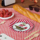 Plaque en papier rayé rouge avec plaisir bateau pirate pour compléter notre ensemble d'invitation pour la fête d'anniversaire "Pirate Voyage".