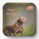 Ces plaques de papier d'anniversaire ont un beau Pitbull marron.