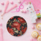 Belles et élégantes grandes pivoines rouges sur des assiettes en papier de fond noir. Parfait pour toutes les occasions d'anniversaire, de douches de mariée, de mariages, etc. Chic et élégant.