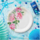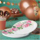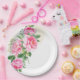 Cette assiette en carton est illustrée d'une belle impression de pivoines roses.