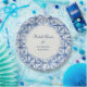 "Fête des mariées Bleue Bleue Bleue Marine de la Côte Balnéaire." Design simple, propre et moderne pour une mariée aimante de style contemporain. C'est une aquarelle acrylique peinte à la main dans un art japonais ancien appelé Shibori Kubo. C'est un travail de ligne libre dans et X motif. Un ensemble complet de papeterie et de décoration de mariage est disponible. Copyright, Audrey Jeanne Roberts.