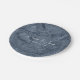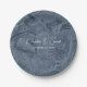 Ces assiettes en papier rond mariage à thème océanique présentent une décoration de coquillages bleu marine poussiéreux et tendance. Côtier élégant design moderne et magnifique design. Copyright de l'image Marg Seregelyi Photography.