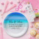 Plaques en papier de mariage avec une plage tropicale de sable. Une magnifique mer turquoise au loin et des eaux cristallines qui caressent une plage de sable. Un ciel bleu vif dans l'arrière - plan.