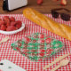 Belles serviettes en papier motif de Noël en plaid et flocons de neige en rouge, vert et blanc.