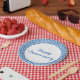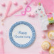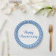 Ayez un grand ensemble de plats avec une belle conception bleue et blanche de clé du grec ancien. Il y a l'espace au milieu pour mettre des initiales ou n'importe quel genre de texte que vous voulez du plat. Choisissez la police, le style et la couleur que vous aimez.