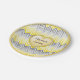 Plaque à papier élégante faite dans un motif de jaune, de gris, et blanc de gradient de chevron, avec une jante jaune vendue. Les graphiques d'un coeur jaune pâle, au centre du plat, a le texte fait sur commande gris et jaune prêt à personnaliser. Beau plat pour des mariages, l'anniversaire, des parties de fiançailles et des dîners de répétition de portes. Les serviettes de papier d'assortiment sont disponibles.