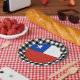 Plaques de papier : Plaques de fête chilienne rustique avec drapeau chilien entouré de motif en plaid de buffle noir et blanc - amour mon pays, décor festif, patriotes nationaux / fans sportifs