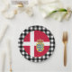 Plaques en papier : Plaques de fête danoises rustiques avec drapeau danois entourées de motif en plaid de buffle noir et blanc - j'aime mon pays, décor festif, patriotes nationaux / fans sportifs