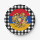 Plaques de papier : Plaques de fête rustique arménienne avec drapeau arménien entouré d'un motif en plaid de buffle noir et blanc - j'aime mon pays, décor festif, patriotes nationaux / fans sportifs