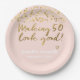 Design chic et glamour "Making 50 Look Good" texte de script en or sur rose vif avec coeur or. Personnalisez avec votre nom et votre date de naissance. Partie d'une collection. ©Les designs créés par Marisu Valencia sont protégés par les LOIS DU DROIT D'AUTEUR.