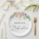 Plaque en papier Baby shower Ethereal Blush Rose Roses. Ce baby shower élégant et élégant présente de magnifiques aquarelles peintes à la main, des roses roses rouges Ethérées. Trouvez les éléments correspondants dans la collection Ethereal Blush Pink Roses.
