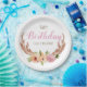 Plaque de papier d'anniversaire pour enfant floral de bois Plaque de papier parfaite pour un anniversaire de thème boisé