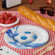 Plaque en papier de fête avec imprimé ballon de football sportif.