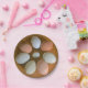 Cette plaque en papier présente des oeufs de différentes couleurs dans un design floral. Idéal pour les fêtes et les pique-niques.