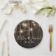 Bois Rustique Éclairage Plaque de papier Mariage. Le design a un arrière - plan en faux bois avec des lampes à cordes. Cela peut être customisé en modifiant le nom et la date du mariage. Besoin d'autres changements ? Cliquez simplement sur le bouton "Concepteur de messages" sur cette page pour entrer en contact avec moi — Je serai heureux d’aider à customiser votre commande!