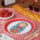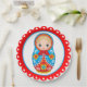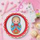 Cette plaque papier est en rouge, bleu, jaune et blanc. L'assiette est conçue avec matryoshka, poupée de nidification russe sur dentelle arrière - plan, idéal pour toute fête de fête.