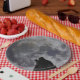 La forme sombre d'un loup hurle devant la pleine lune, parfaite pour n'importe quelle table d'Halloween, ou même juste pour les gourmandises. A-t-il faim ? Est-il à la chasse ? Je pense que vous feriez mieux de mettre quelque chose dans l'assiette avant qu'il ne décide de vous dévorer !