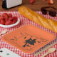 Plaque de papier de fête illustrée dans un imprimé sorcier d'Halloween. forme carré