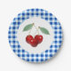 Cette plaque de papier Retro Cherries présente mon design rétro cerise avec en vichy bleu.