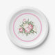 Plaque de papier de fête en blanc avec une belle impression rose roses. Customiser cette assiette ou acheter tel quel.