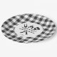 Plaques en papier Rustic plaid mariage de répétition. Élégant plateau de buffle noir et blanc avec des graphismes modernes élève tout dîner de répétition de barbecue rustique. Personnalisez les assiettes pour lui donner un look personnalisé avec l'outil de personnalisation et vous aurez un dîner de répétition d'été merveilleusement organisé. Découvrez d'autres produits de la collection Rustic Black and White Plaid.