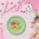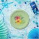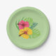 Servez tous vos plats de luau préférés sur cette belle assiette de fête en papier. Un arrière - plan vert clair avec hibiscus au-dessus de multiples verdure complète cette assiette. Parfait pour tout événement !