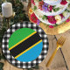 Plaques de papier : Plaques de fête rustique Tanzanie avec drapeau tanzanien entouré d'un motif en plaid de buffle noir et blanc - amour mon pays, décor festif, patriotes nationaux / fans sportifs